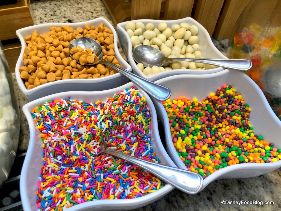 For breakfast, that means an assortment of breads and pastries followed by fruit and a yogurt parfait, then a platter of Scrambled Eggs, Chicken Sausage, Slow-roasted Beef Brisket, Mickey Waffles, Pork Sausage Links, and Smoked Bacon.