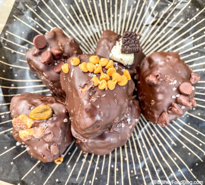 Next, we got a bag of Gideon’s Bites. These are quarters of Gideon’s famous cookies covered in chocolate and then topped with the signature ingredients of that cookie so you can tell the difference between flavors!