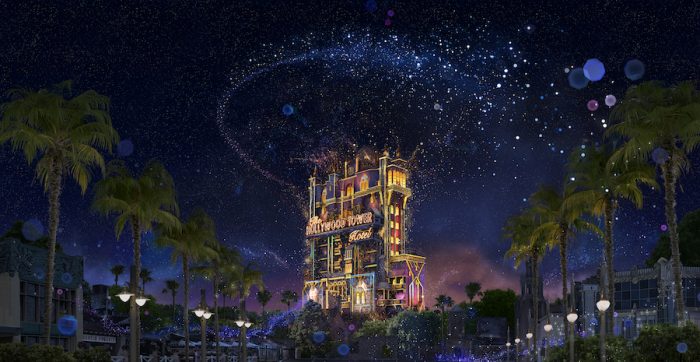 Over at Hollywood Studios, the makeover is coming to the Hollywood Tower Hotel, otherwise known as Tower of Terror. We’ve seen projections here in the past with Sunset Seasons Greetings during the holidays, and they add such a fun look to Sunset Boulevard, so we’re sure these will do the same!