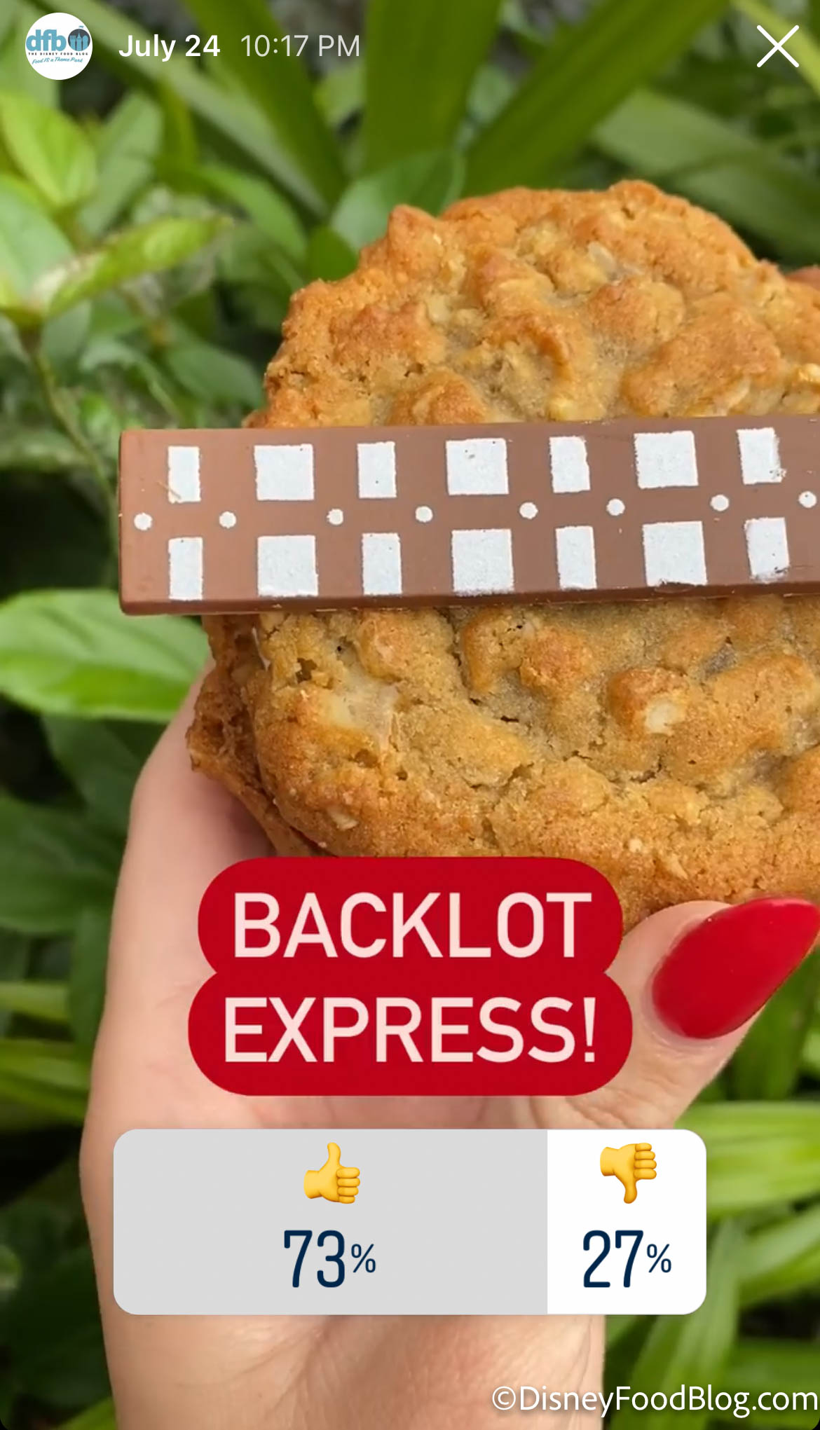 Backlot also occasionally offers Star Wars-themed eats, such as the Wookie Cookie, which is an oatmeal cookie sandwich with whoopie-pie cream filling.