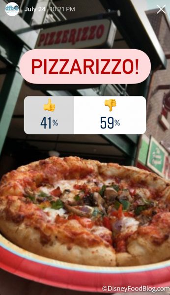 With 41% of your votes, PizzeRizzo does not rank high for a pizza joint! PizzeRizzo is “owned” by the Muppet Rizzo the Rat, and is open seasonally near Muppet*Vision 3D.