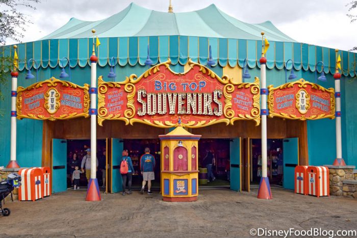 Big Top Souvenirs is a circus tent-themed gift shop located in Fantasyland in Disney’s Magic Kingdom!