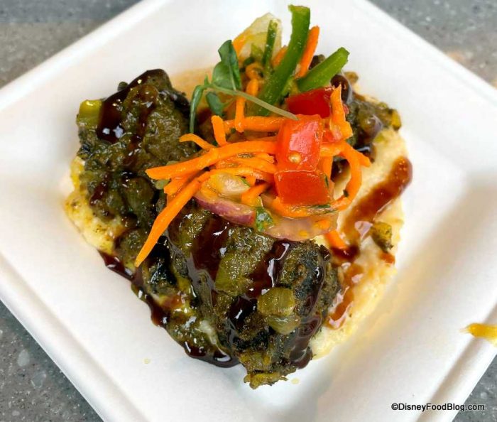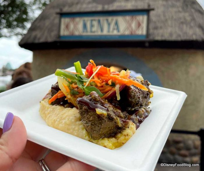 If you’re looking for strong and unique flavor, head to the Kenya booth at this year’s EPCOT Food and Wine Festival! These dishes pack a punch, and we ended up liking the sides on each dish the most. The Sweet Potato and Corn Mealie Pap was a stand out here, give it a try on your next visit to the festival!