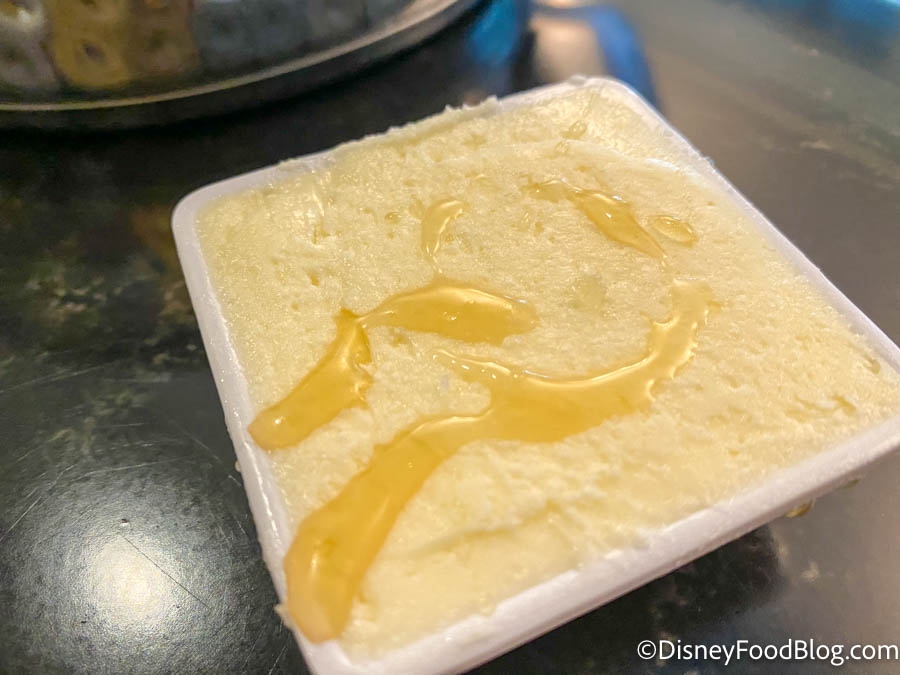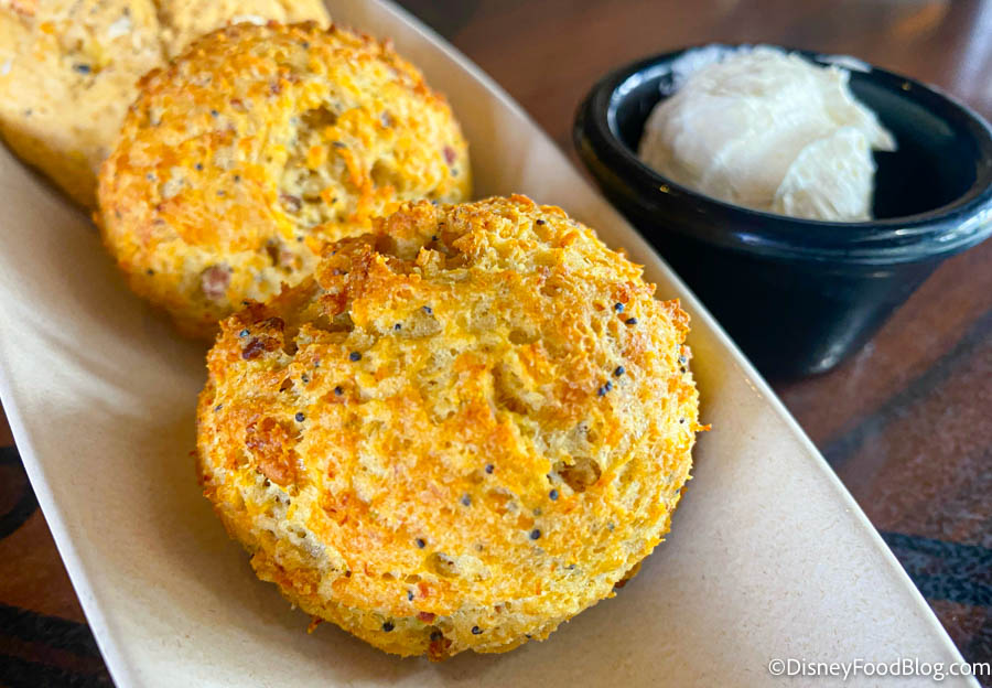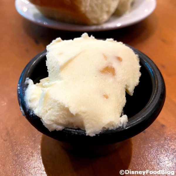 First of all — you had us at honey butter. When Disney gives us a “fancier” condiment for our bread baskets, we’re usually pretty jazzed. Many spots serve up a standard chilled pat of butter that’s…fine. But it could be BETTER. This is better. Plus, we could have eaten 100 pieces of the monkey bread and it still may not have been enough.