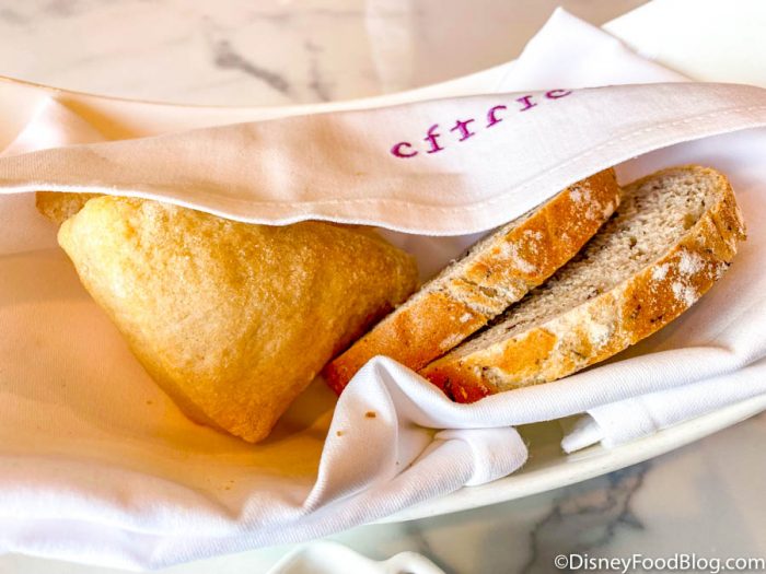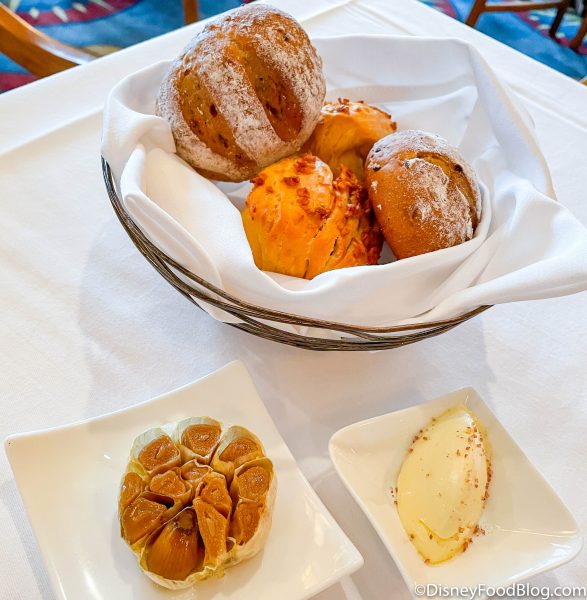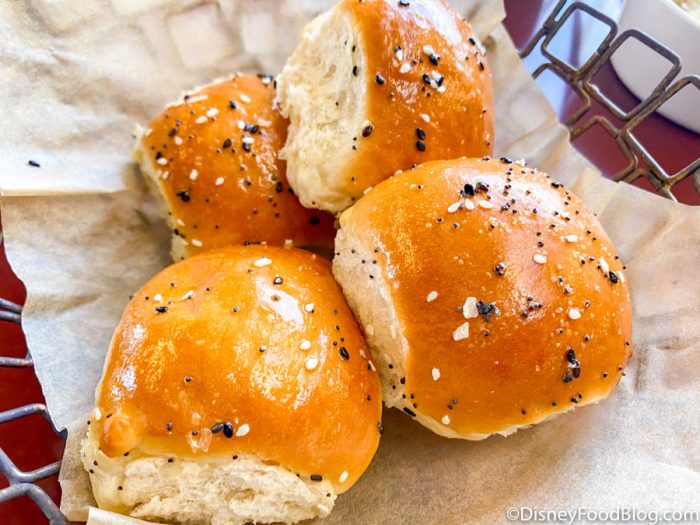 We couldn’t talk about Disney World bread baskets without at least mentioning Kona Cafe in Disney’s Polynesian Village Resort! This spot used to be well known for its Soft Rolls served with Macadamia Nut Butter, and though the Soft Rolls are now served with Plain Butter, there is still a chance that you can get them served with the better butter!