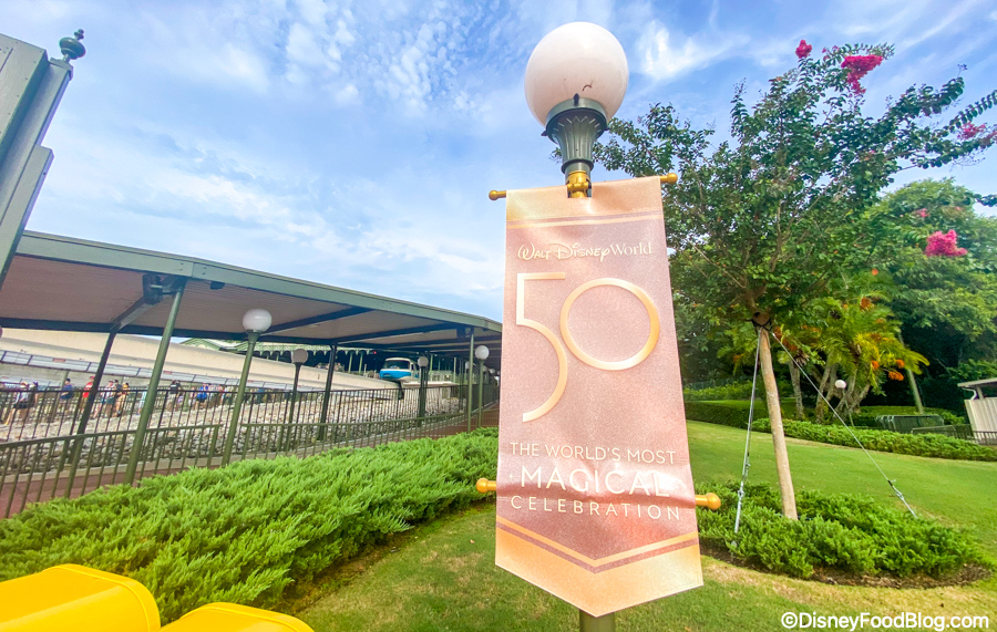 50th anniversary banners have gone up around the entrance of Magic Kingdom!