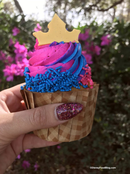 - The Aurora Cupcake is another returning item. This is a vanilla cupcake filled with marshmallow topped with strawberry buttercream, gold chocolate crown, and sprinkles