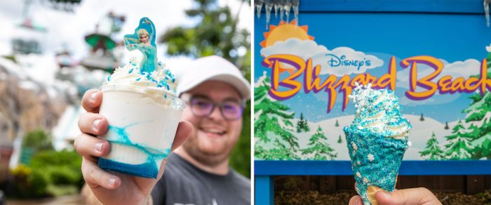- Elsa the Snow Queen Cone – Crystalized white chocolate waffle cone, vanilla soft-serve, and spiraled frozen fractals
