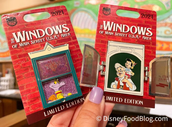 If you’re following along with the Windows of Main Street U.S.A. pin collection, you’ll want to know that both the Figment and Pinocchio pins are currently available at Riverside Depot.