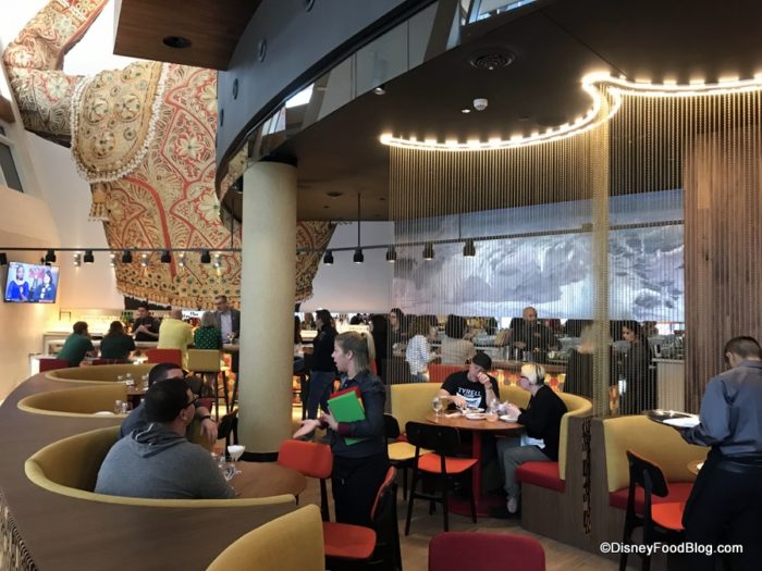 The atmosphere here is really fun, with eccentric artwork, fancy decor, and everyone shouting “PAELLA” every 45 minutes! You can easily spend a long night here drinking, nibbling, and talking. This is a really unique spot in Springs. This could also be a spot for you if you’re doing a Disney Springs crawl. Grab a glass of wine or sangria, and share a few tapas as appetizers as a strong start to your crawl! With such a variety of dining in Disney Springs, a lively tapas and paella joint fits in well but also manages to stand out. We’ll be back for sure.