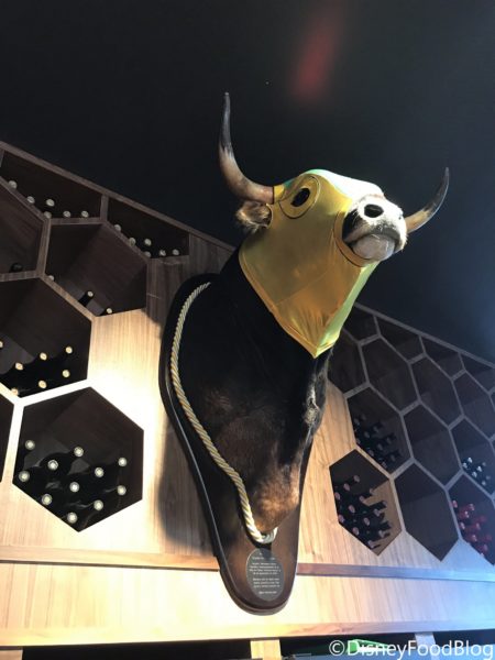 As a fun decor item in each of his restaurants, José Andrés always puts a bull with a luchador mask inside somewhere. (Luchadors are those fun, dramatic wrestlers who wear sparkly masks.)