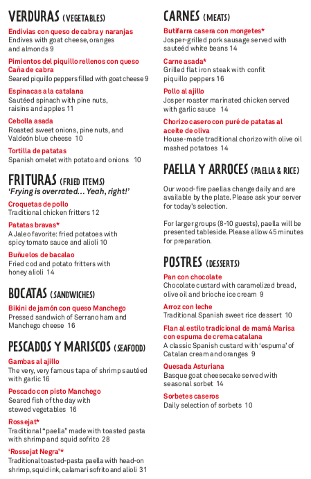 …and also vegetables, fried foods, sandwiches, seafood, paella, and desserts! The Paella and Arroces (paella and rice) section is the star here — Jaleo is known for their paella!