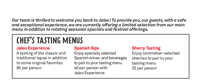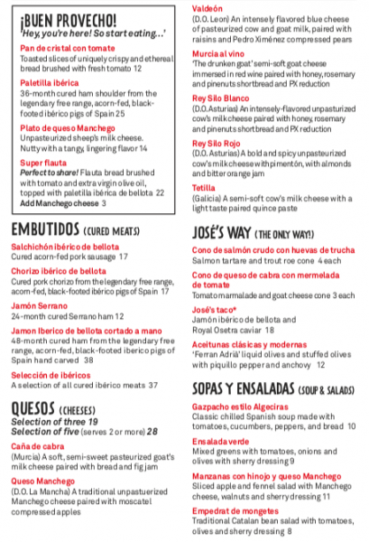 Any idea what the Jaleo experience tasting menu includes? Does it have some of the Jamon Iberico and Paella?