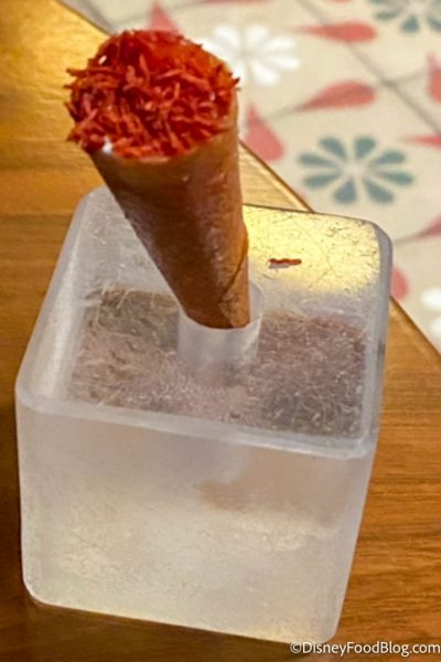 It wasn’t sickly sweet, like some Sangrias in Disney World can be. Our waiter told us the Red Sangria was even less sweet. The predominant alcohol was the Cava, and there wasn’t a lot of Gin in it. Ultimately, this was a good drink but pretty forgettable.