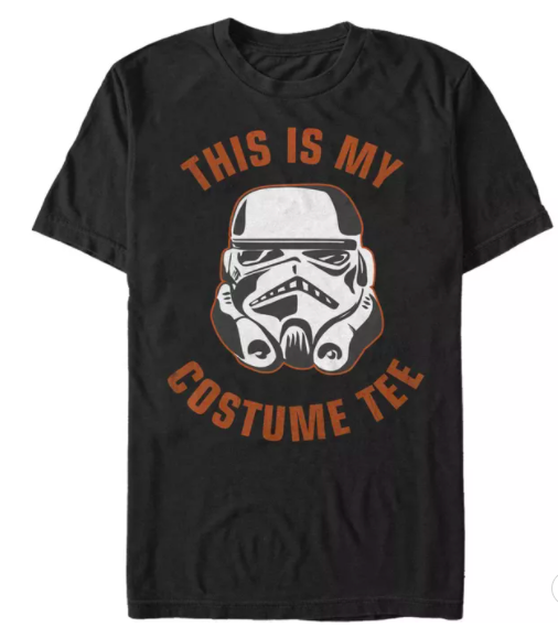 We took a look at Target, Amazon, and Spirit Halloween to find these super easy costumes. Let’s start out with a Star Wars-themed ensemble. You and your crew can each get a “This is my costume tee” for a different Star Wars character, that way no one will be confused about who you’re supposed to be!