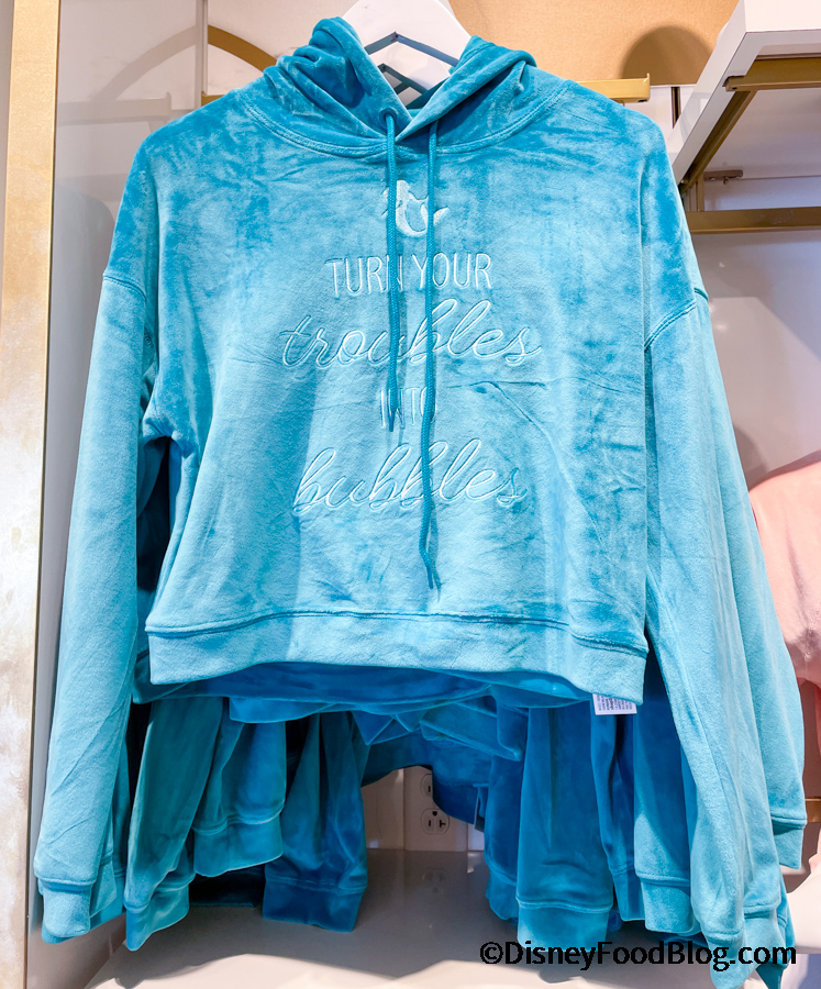 We’re digging this Ariel Sweatshirt for $59.99 that says “Turn your troubles into bubbles.”