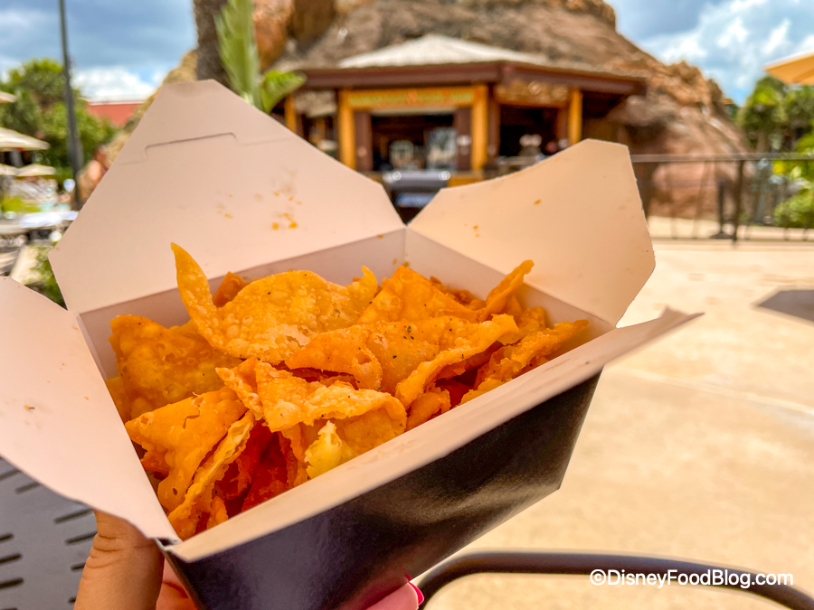 Everything we ordered was so fresh and different compared to the typical pool bar foods. Like the rest of the resort, everything had a fun Polynesian flair! While the food menu isn’t quite as large as a full sit-down spot might be, there are so many great options to choose from at the Barefoot Pool Bar! Bonus points that the prices are not bad at all (you can bet we’re going back for more $4 Wonton Chips!).