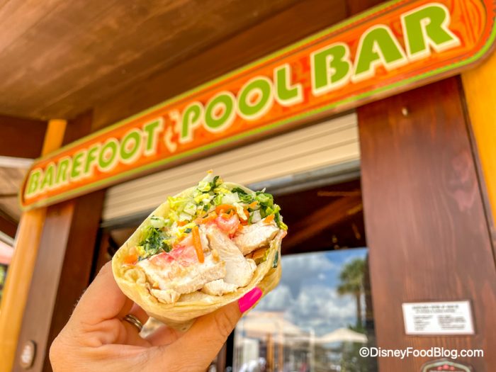 You may remember that the Barefoot Pool Bar has already been open, but only served drinks. Now, it is serving food again! The food options come from the Oasis Bar & Grill kitchen (the OTHER pool bar at the Poly!). The menu is actually largely the same!