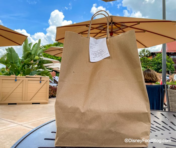 Once our to-go order was ready, we were ready to eat! It arrived in this paper bag, and came with napkins and utensils!