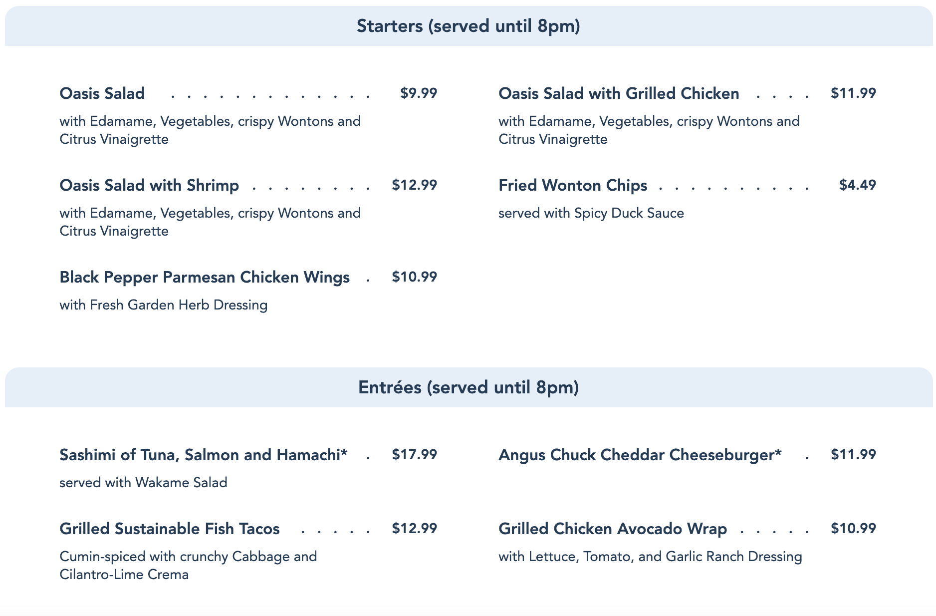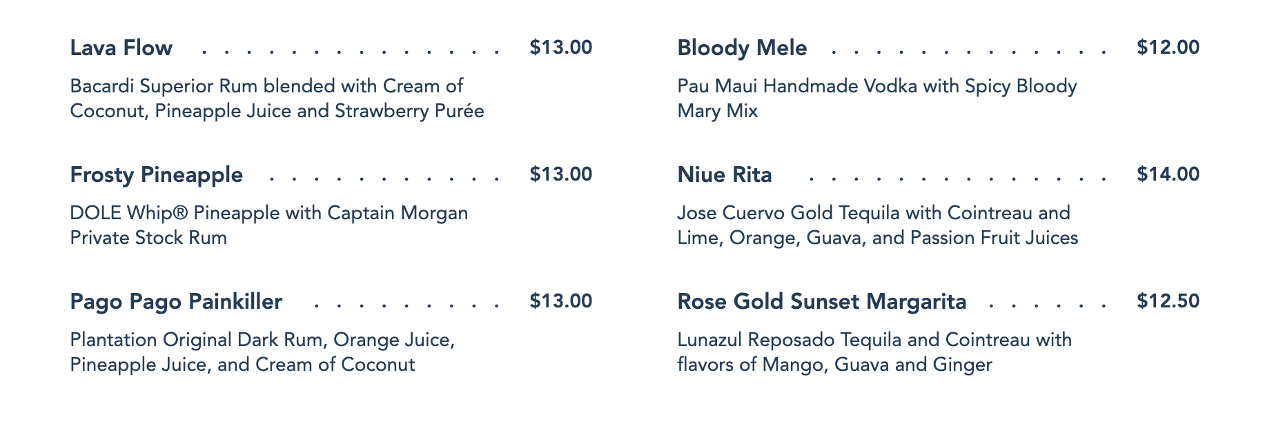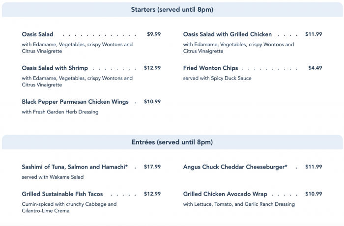 We ordered The Voyager, which is made with Parrot Bay coconut rum blended with cream of coconut and pineapple juice, layered with pineapple Dole Whip and blue curaçao for $14.75! This is currently not on the menu on the website, but a specialty drink that gets featured frequently. We have an extra fond place in our heart for this little drink that could because we helped create it!!