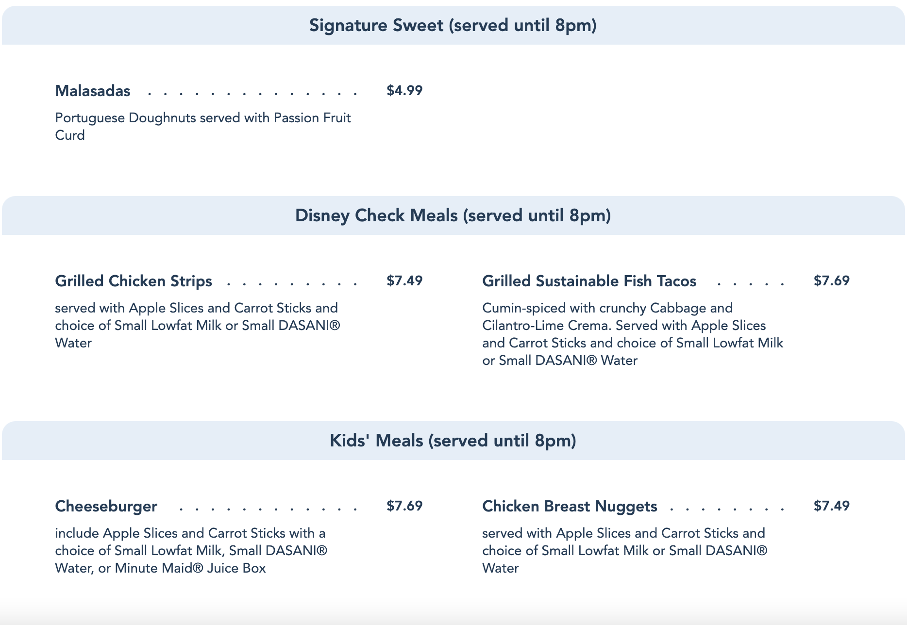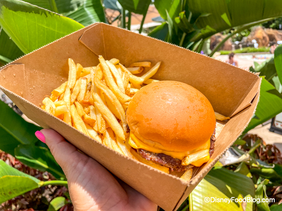 Over on the kid’s side of town, we ordered the Kids’ Cheeseburger for $7.69. As expected, it was pretty much just a typical theme park cheeseburger that you could find in the parks and resorts. That being said, it still tasted quite good, and it’s a great option for picky eaters or kids!