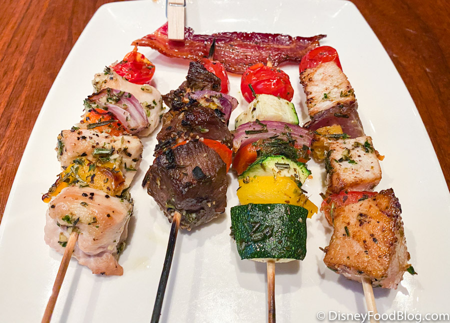 The bacon was DELICIOUS and they even had someone at the table torching the bacon as we watched. The skewers were next and they had four to choose from.