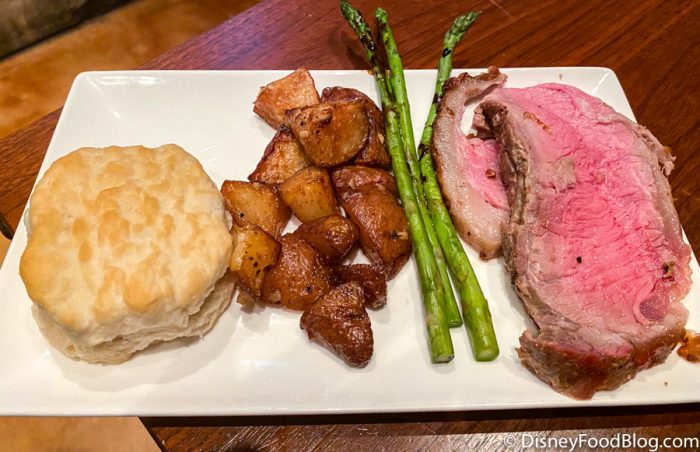 The main course was next! Instead of it being served to us, they put the food at buffet-style tables for everyone to go get their own food. The items included biscuits, asparagus, roasted potatoes, and sirloin that was sliced right in front of you.