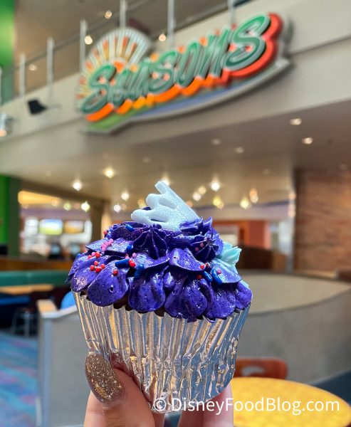 Anna and Elsa are some of the most popular Disney princesses (and queens) from recent years, so it only makes sense that they have their own treat this week! We headed over to Sunshine Seasons in the Land Pavilion at EPCOT to check out the Sisters Cupcake.