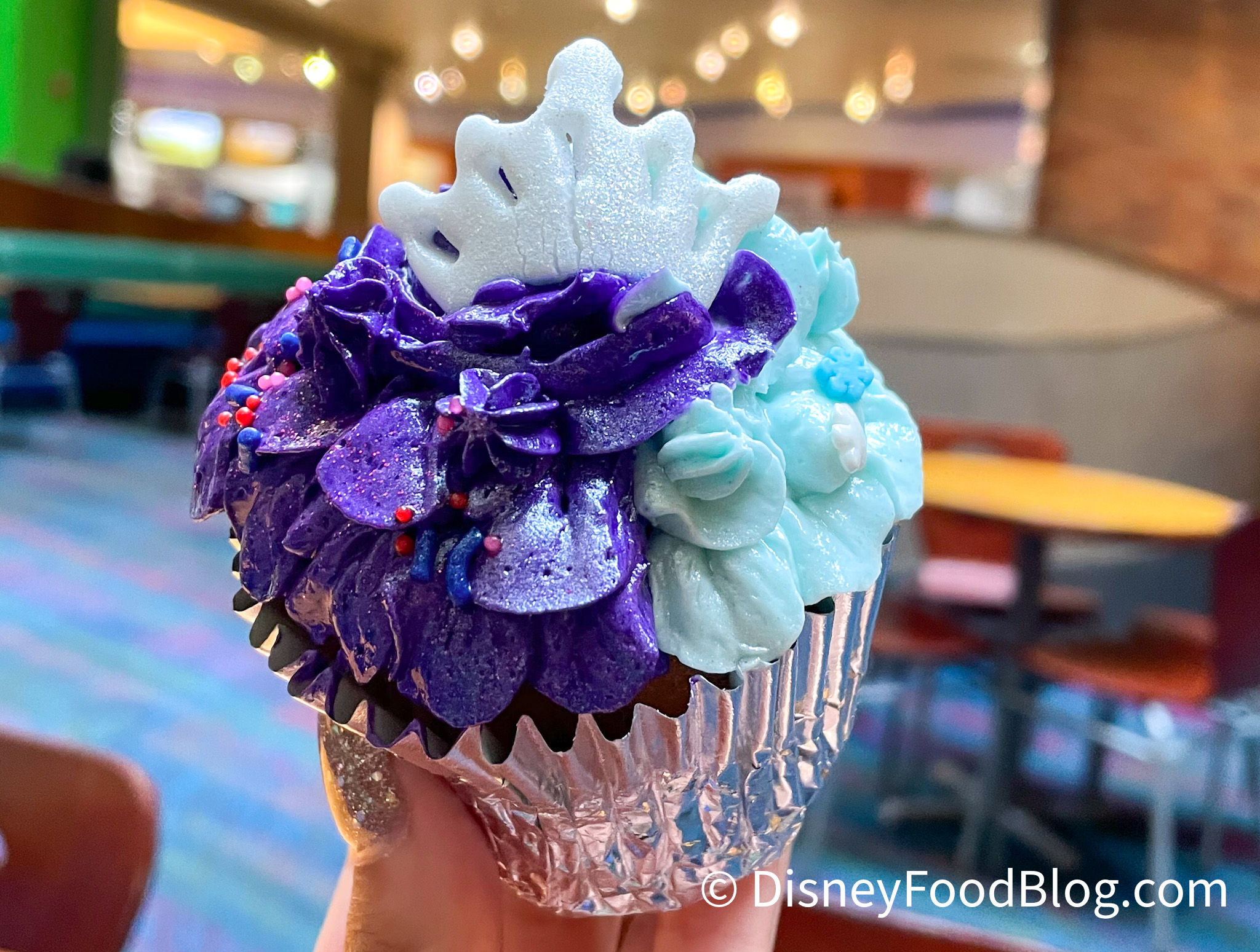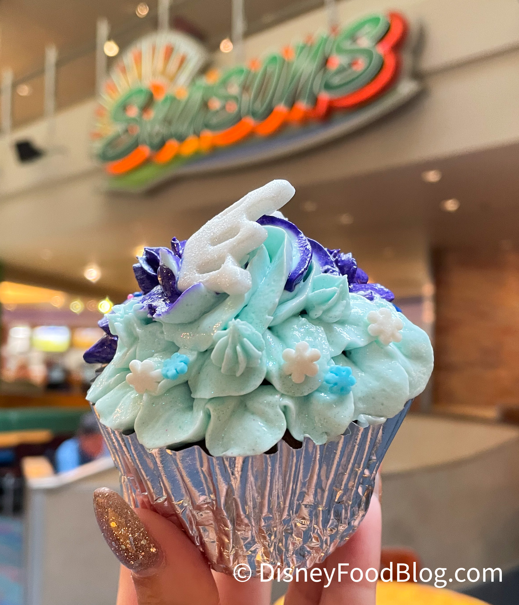 Today marks the first day of World Princess Week, and Disney World is celebrating in a bunch of different ways! There is new merchandise, Princess-themed treats, and even a special playground dedicated to Tiana in EPCOT. But today, we’re trying out a NEW cupcake in Disney World based on the Frozen franchise!
