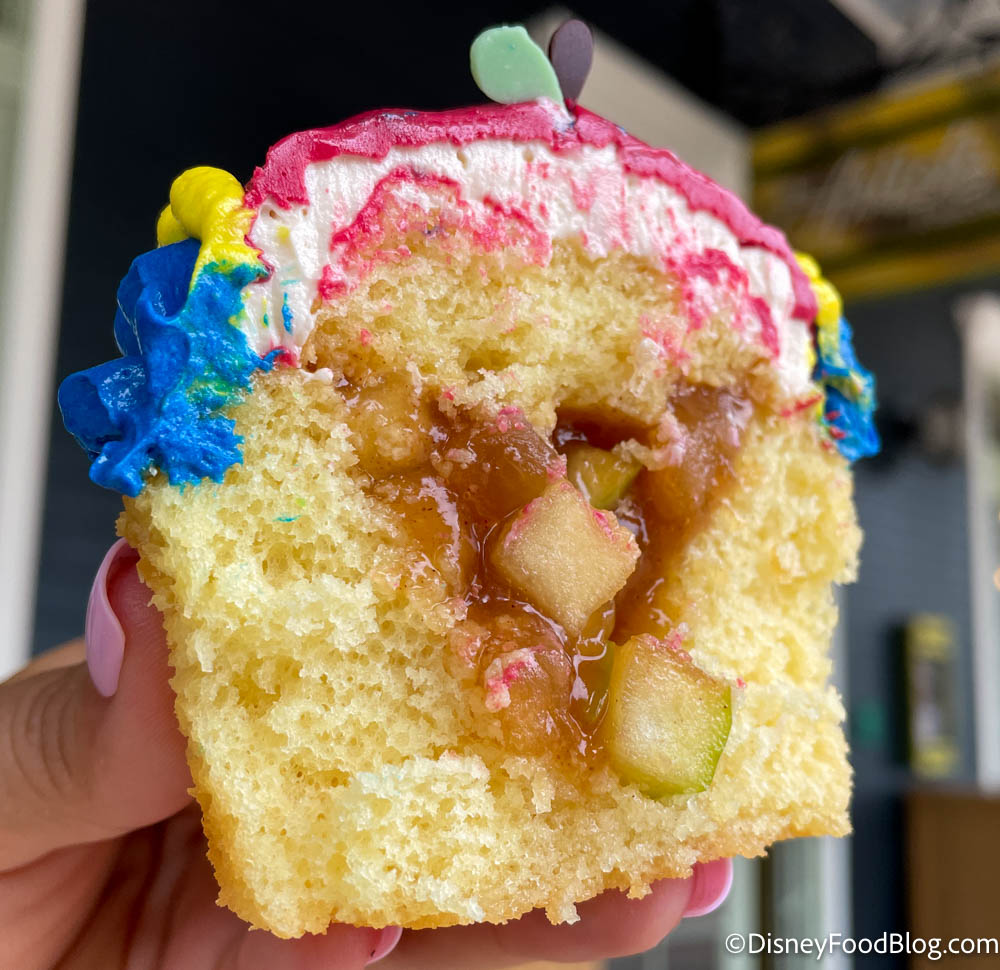 And…we thought the Snow White Cupcake was delicious! The cake itself was super moist, but the best part was actually the apple filling inside.