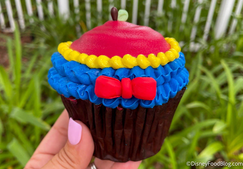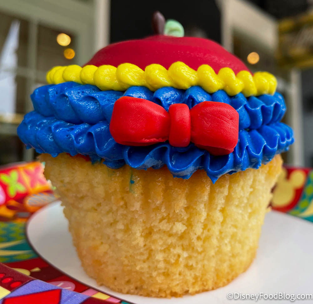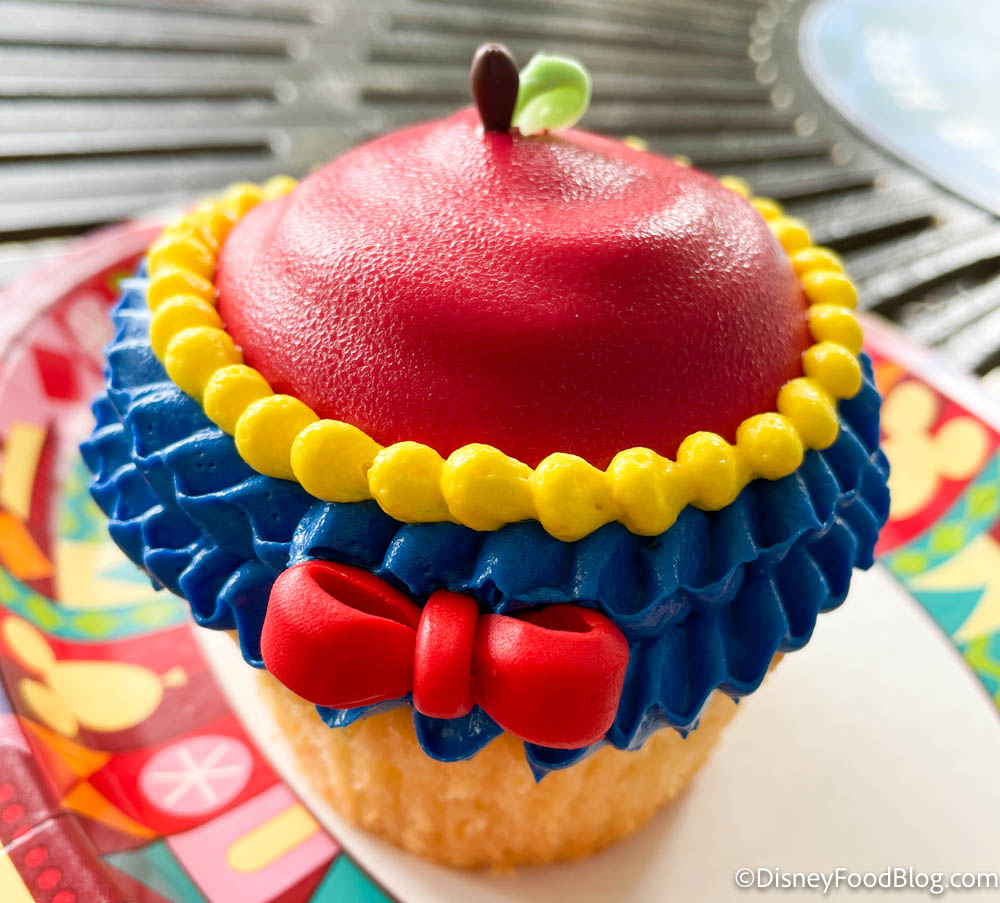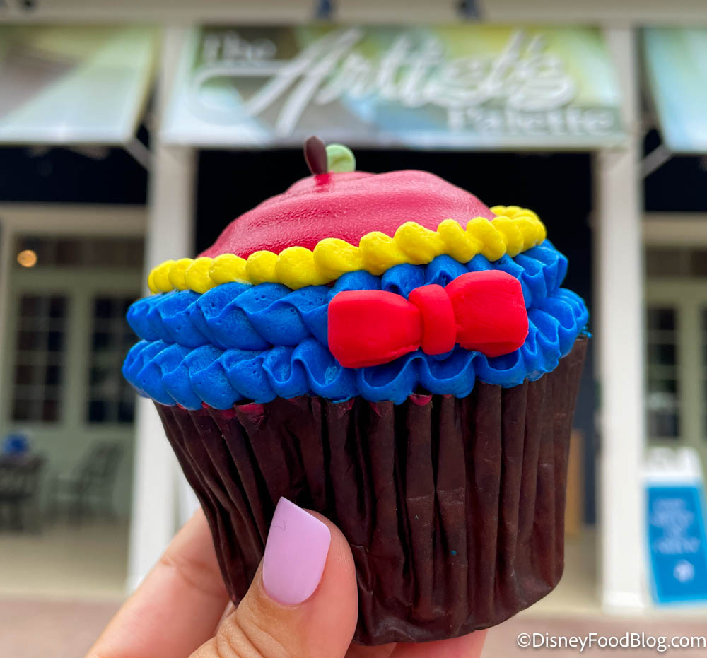 We found the Snow White Cupcake at The Artist’s Palette at Disney’s Saratoga Springs Resort & Spa for $5.99. You can try it right now during World Princess Week, which is set to last through August 29th.