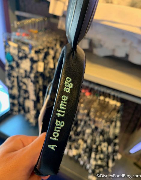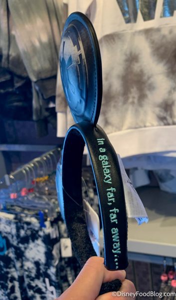 On the headband, one of the most iconic lines from the Star Wars movies is embroidered in blue lettering. A long time ago…