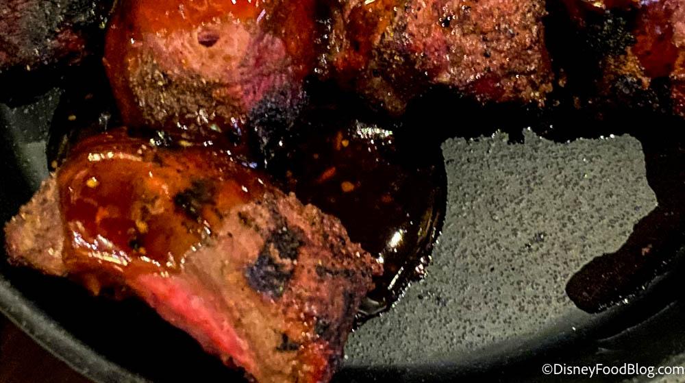 The Wood-Fired Grilled Teriyaki Beef remains unchanged but still had a great flavor. The meat was pretty thick and tough. It’s not the best steak you can find in Disney World, but considering all the other goodies you’re getting here, we don’t suspect too many people come here looking for the most perfect steak of their lives. It’s still got a nice flavor though. You can definitely taste that wood-fired char. Mmm.
