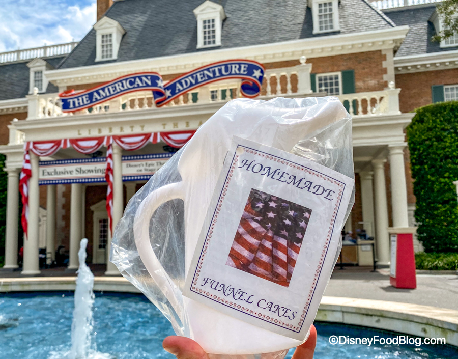 If you want to grab one of these sets for yourself, be sure to stop by the Funnel Cakes kiosk in EPCOT’s American Adventure Pavilion to see if they’re available. Just keep in mind that the mixture is pretty heavy so you might want to wait until closer to the end of your day in EPCOT to pick this one up. Just be sure to check the hours for the Funnel Cakes kiosk on the day of your visit.