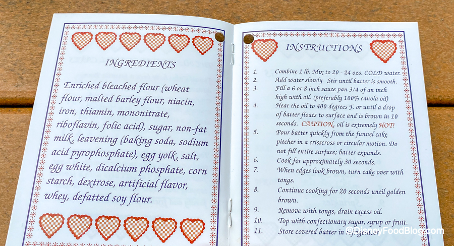 The little booklet the set comes with includes a list of ingredients contained in the mix as well as instructions as to how you’ll make those tasty funnel cakes at home.