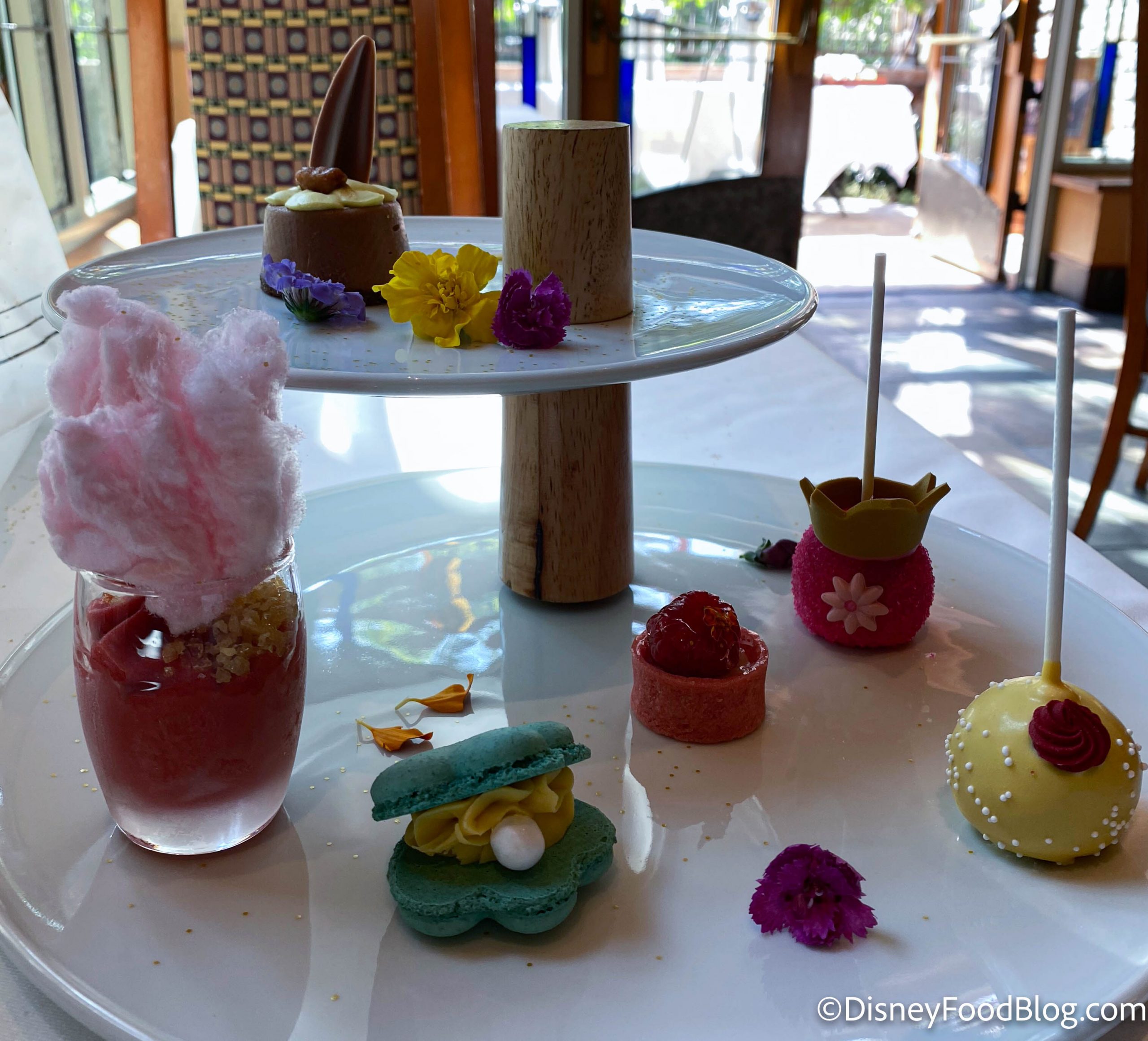 And the Dessert Course came with Pocahontas Peanut Butter Mousse, Mulan Firecracker Strawberry Sorbet (with pop rocks!), Ariel Mango Macaron, Belle Raspberry Tart, and Belle and Aurora Brownie Cake Pops. Yum!