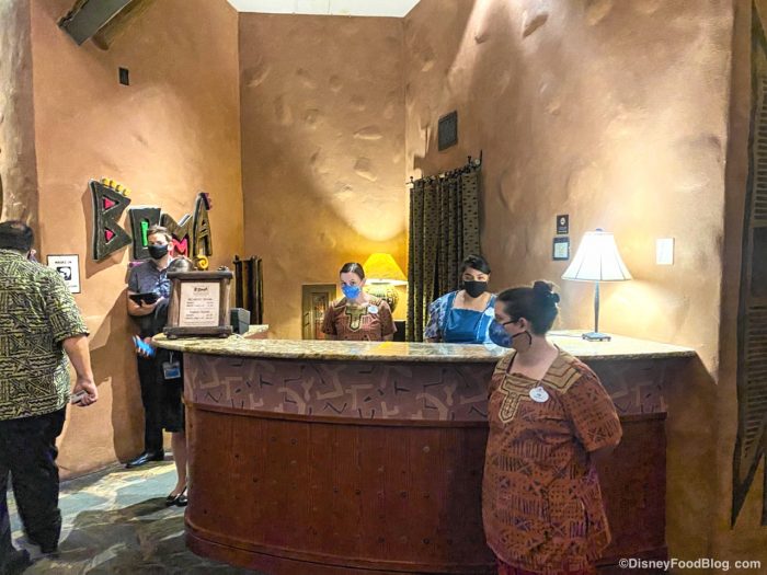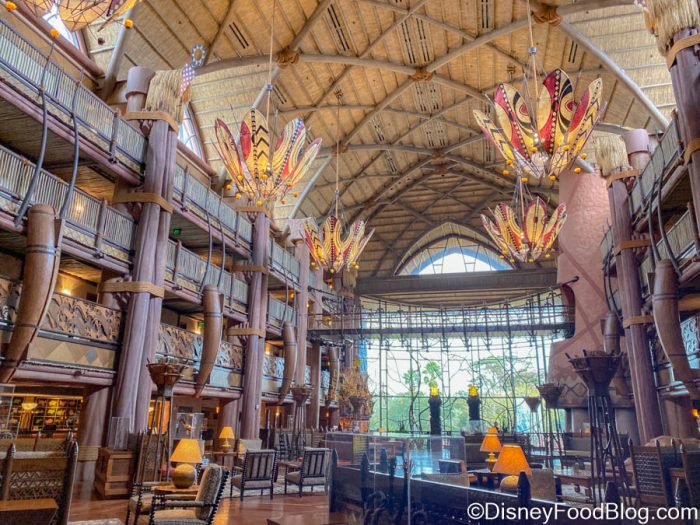 Boma is located on the lower level of the Animal Kingdom Jambo House, so you’ll need to take the elevator or stairs down to it from the main lobby. But also, take a second to appreciate the gorgeous lobby here. I mean, just look:
