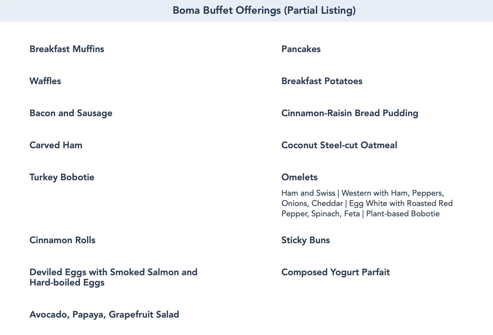 And breakfast just isn’t complete without some eggs! Boma offers a variety of scrambled eggs and omelets.