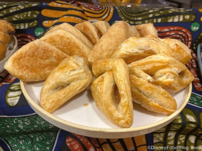 The Scrambled Eggs with Spinach, Tomato, and Feta were some of the best scrambled eggs we’ve had at Disney World! We really enjoyed the creamy texture and the strong feta cheese flavor throughout these eggs. If you’re not a big fan of those Mediterranean flavors, these may not be your jam. But for anyone who likes cheesy scrambled eggs, grab a big scoop of them!