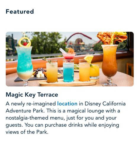 In Disney California Adventure Park, there is a Magic Key Terrace where key holders can have access to an exclusive menu by Chef Jose Ruiz, and key holders will also be able to read a special interview with the Chef.