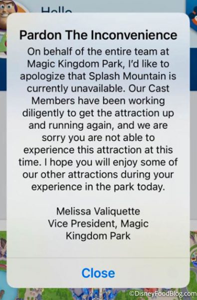 Later, we received a notification from the Disney app that Cast Members are working to get the attraction running again.