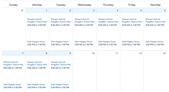 Finally, the hours for Disney’s Animal Kingdom for the entire week are 8AM to 7PM.