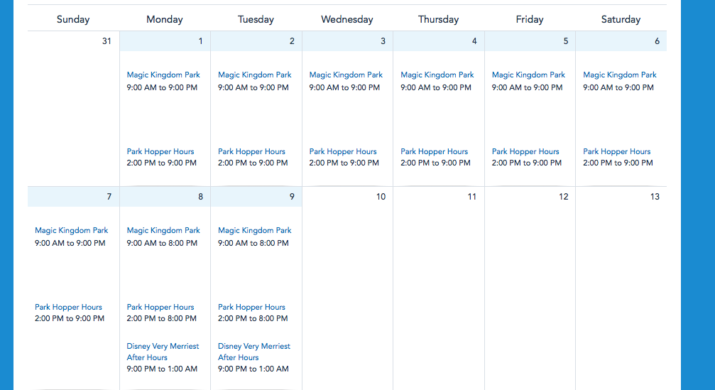 Previously, Disney World had released hours through late October, and then later for October 31st (Halloween!). Now, we have hours available through November 9th.