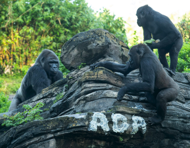 The animal care team put so much thought into this name reveal and truly made it a family affair. They utilized rice cereal to spell the name out on a rock. They did this to stimulate the gorilla’s problem-solving skills and to encourage them to reveal the name themselves!