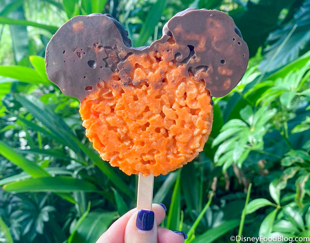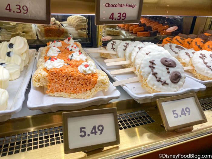 This spot was also serving up the incredibly adorable Mickey-shaped Jack-o-Lantern Rice Krispie treat for $5.49. This is a returning item (like many of the others showcased above), but we just had to grab it!