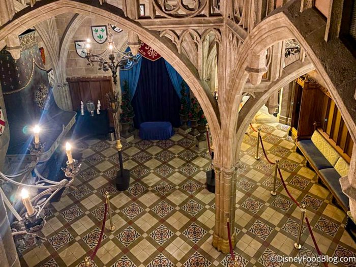 A note on the layout here. Before the closures, you’d typically meet Cinderella down in the main foyer area for a photograph before ascending a spiral staircase to the dining room (there’s an elevator too, if you have mobility issues). For now, you just walk to the stairs and head up. Just note it’s a little more narrow of a walkway than you might think!