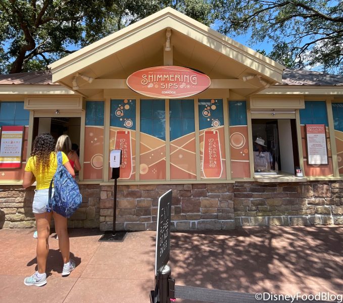As we walked around EPCOT and past some of the booths at EPCOT’s International Food & Wine Festival, we saw that the Stemless Flute Corkcicle is out of stock at Shimmering Sips at the moment!
