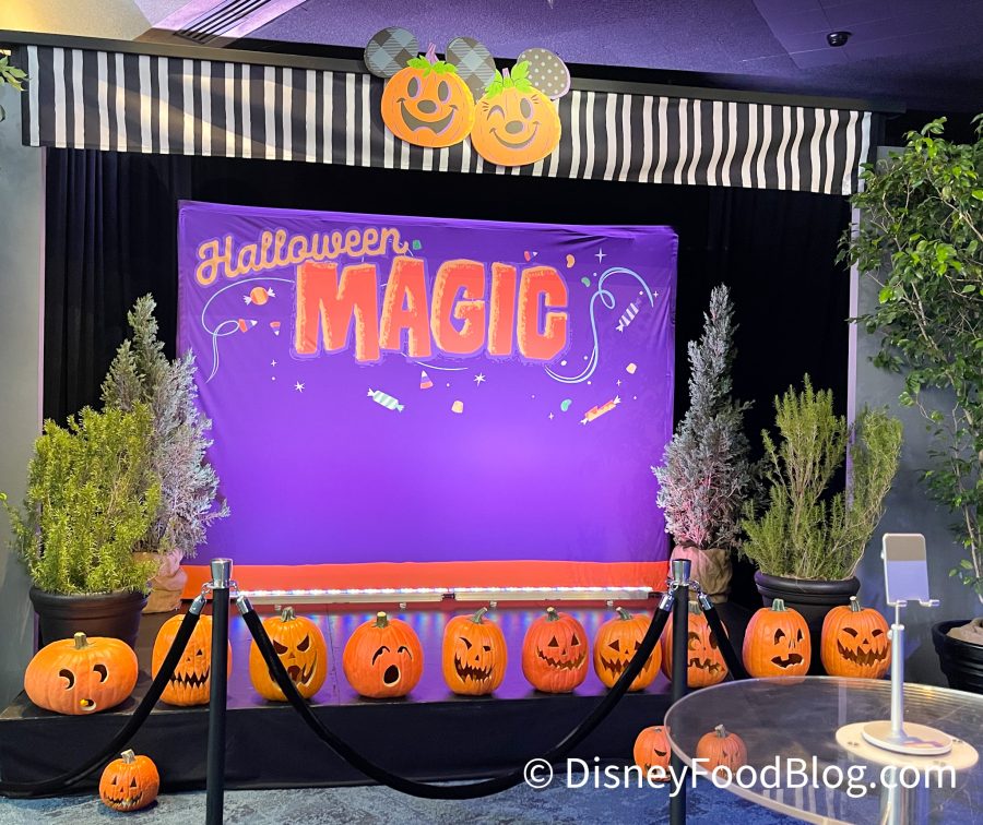 Stepping into the lounge, you’ll notice a few photo opportunities, including fun photo walls promoting Haunted Mansion Holiday and Muppets Haunted Mansion, coming this October to Disney+.