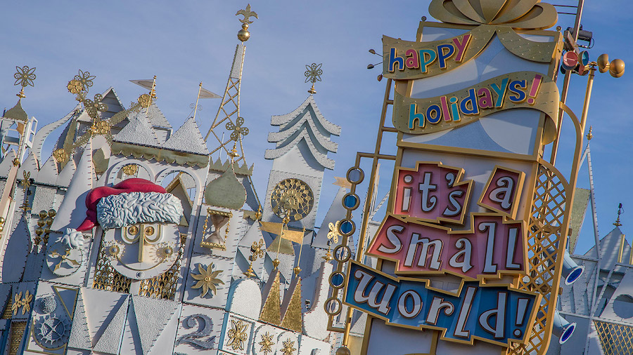 At the end of the day, there will be a magical “snowfall” and colorful projections on Main Street, U.S.A. AND on the façade of “it’s a small world” during the “Believe in Holiday Magic” fireworks!
