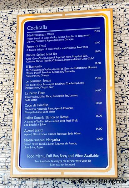 Today, we found ourselves at Bar Riva at Disney’s Riviera Resort and noticed something new on the menu: A Mediterranean Margarita. Ooh — color us intrigued!